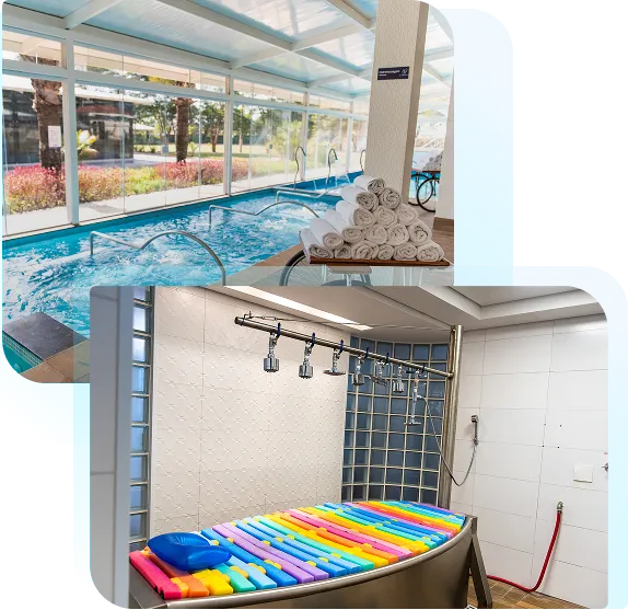 Nossas piscinas termais e equipamentos de última geração proporcionam terapias com água em diferentes temperaturas e pressões, promovendo relaxamento, alívio de dores, reabilitação e equilíbrio integral.